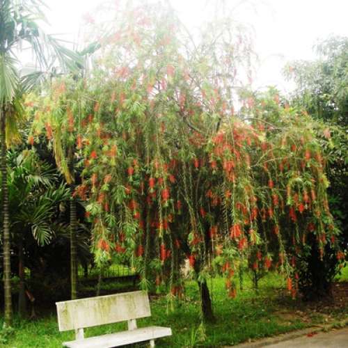 Đặc điểm của cây Cây liễu rủ được trồng ở công viên Cây liễu rủ được trồng ở công viên Cây liễu trồng ở sân vườn cho hoa màu đỏ Lá của cây liễu rủ có màu xanh thẫm, lá có mang hình phiến dài thon hẹp, mềm mại như những dải dây băng tua, bià mé của lá có răng cưa, đặc biệt là mặt dưới của lá liễu rũ nhìn có thể nhầm thành mặt dưới của lá cây bị mốc trắng. Lá của cây liễu rũ là loại lá mọc so le với nhau trên cùng một cành rủ xuống gốc cây thay vì mọc đối xứng với nhau như cây hoa hồng bụi hoặc là mọc dày thành cụm xoắn ốc tròn như cây tràm đỏ, giống cây khá giống liễu và vẫn bị người dân nhầm và gọi là cây liễu Đặc điểm sinh trưởng Cây liễu rũ có tốc độ sinh trưởng bình thường. Tác dụng Cây thường được trồng phổ biến nhất là quanh các bờ hồ để tạo cảnh quan thơ mộng tươi đẹp cho các hồ.cây liễu rũ có bộ rễ đặc biệt có thể giúp giữ đất quanh bờ hồ mà không bị những hiện tượng thường xuyên sảy ra tại những nơi như vậy như ví dụ điển hình nhất là sạc lở đất. Ngoài việc cây liễu rủ được trồng ở quanh bờ hồ ra thì cây liễu rủ còn được trồng ở nhiều nơi khác để tạo cảnh quan cho không gian sống khac. Cây liễu rủ có thể được trồng ở vỉa hè, trên lề đường để tạo không gian xanh cho đường phố, đồng thời cây còn được trồng ở công viên vừa để tạo cảnh đẹp, vừa để cây liễu rủ che bóng mát…